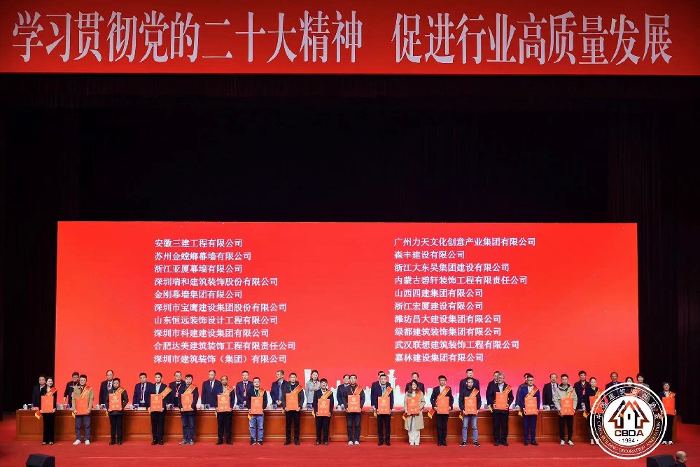 喜报中国建筑装饰协会在京颁奖科建建设集团喜获八项荣誉▲图为颁奖仪式现场3月23日,中国建筑装饰协会在北京召开“学习贯彻党的二十大精神促进行业高质量发展”报告会暨装饰奖科技奖颁奖、行业统计发布会。深圳市科建建设集团在2021—2022年度喜获四项中国建筑工程装饰奖和四项中国建筑装饰行业科学技术奖并在会上受到表彰。...