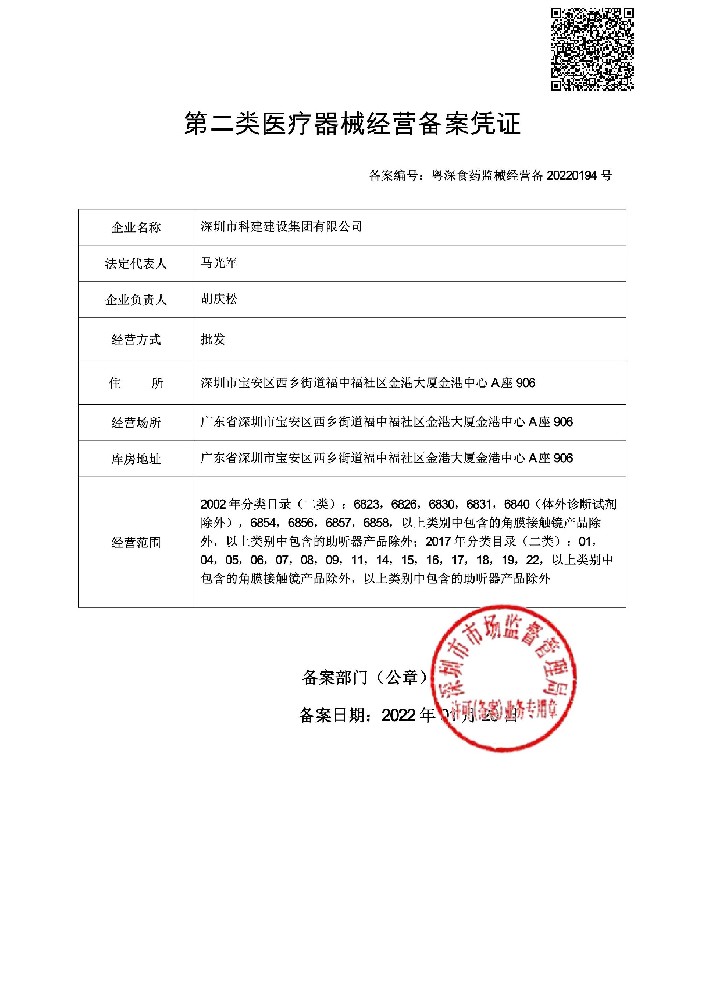 第二类医疗器械经营备案凭证